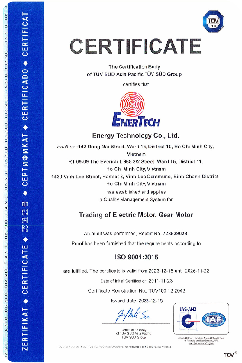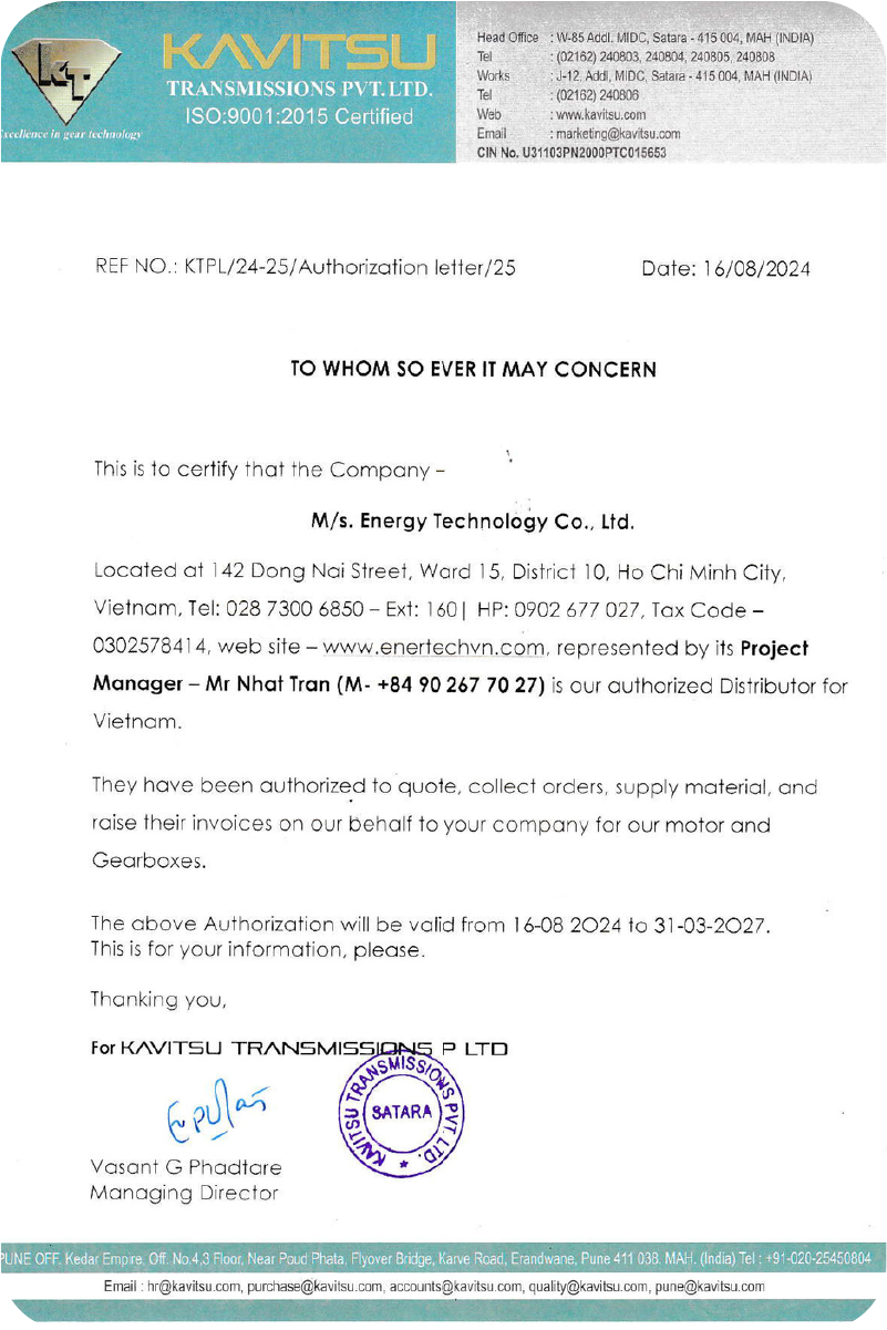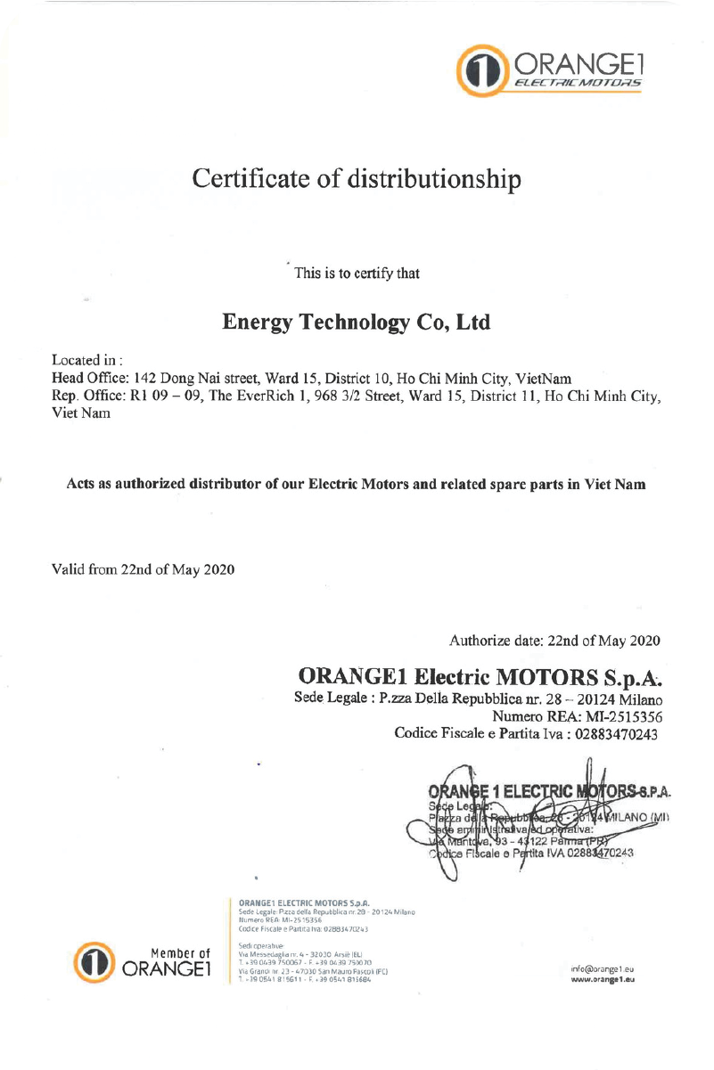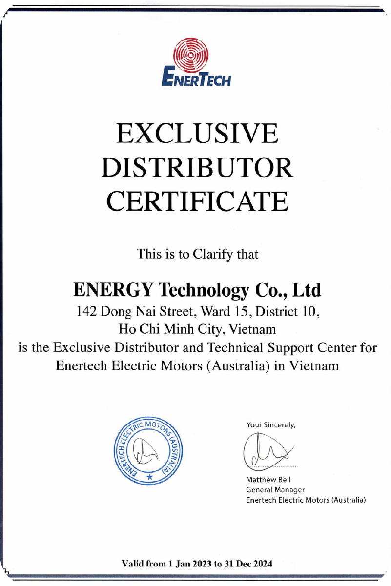 Trở thành nhà phân phối độc quyền tại Việt Nam cho thương hiệu Enertech - một trong những hãng động cơ hàng đầu châu Á.