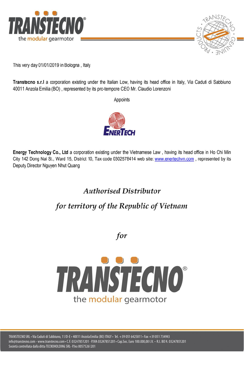 Mở rộng danh mục sản phẩm bằng việc trở thành đại diện phân phối chính thức của Transtecno - thương hiệu hộp giảm tốc cao cấp từ Ý.
