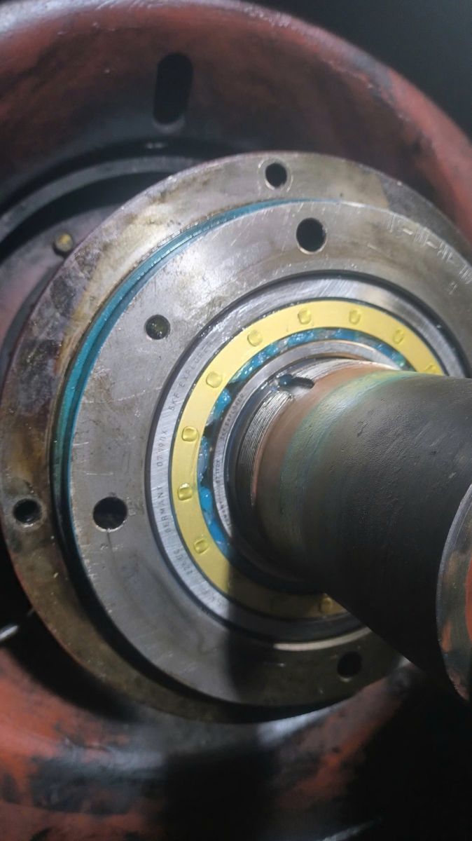 - Vòng bi bị rò rỉ dầu hoặc bôi trơn quá nhiều. Lượng dầu mỡ thông thường chỉ nên chiếm hai phần ba khoang vòng bi.